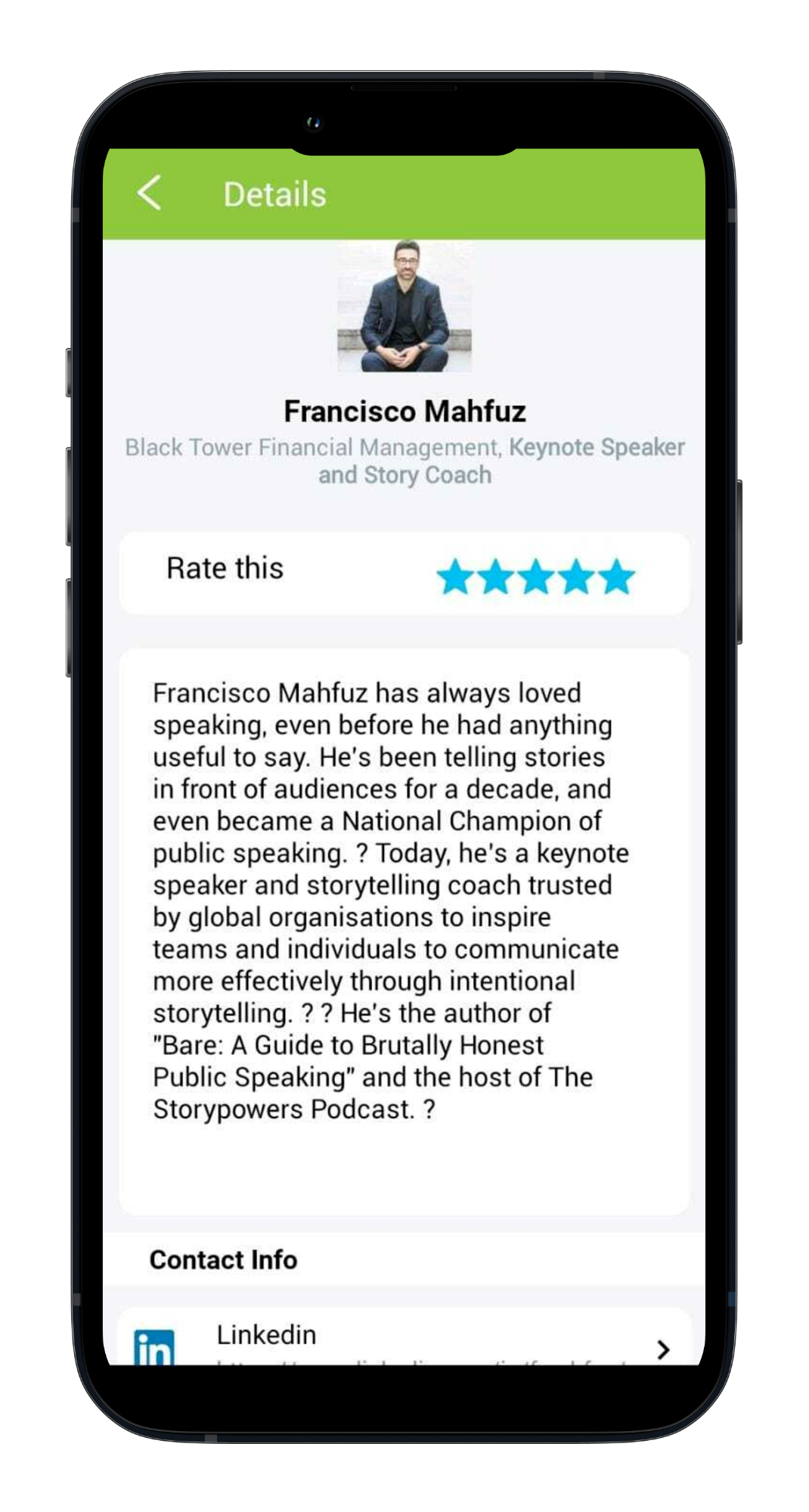 One of the challenges faced by the conference organizers was disseminating agenda and speaker information to attendees. webMOBI provided a unified view of speakers and the sessions they were speaking in. This made it easy for attendees to plan their schedules and stay informed about the conference.