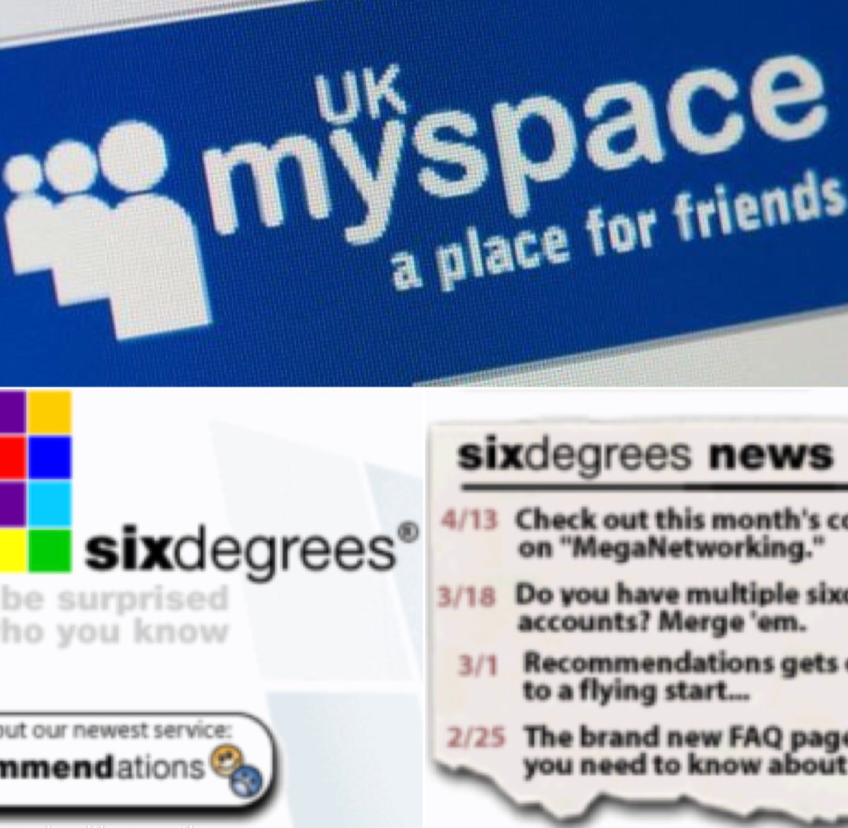 Il primo blog si chiamò SixDegrees, creato dall’avvocato Andrew Weinreich e basato sull’interessante Teoria dei Sei Gradi di Separazione, secondo la quale tutti gli uomini sulla terra sono collegati tra loro tramite una catena di conoscenze di non più di 5 intermediari.