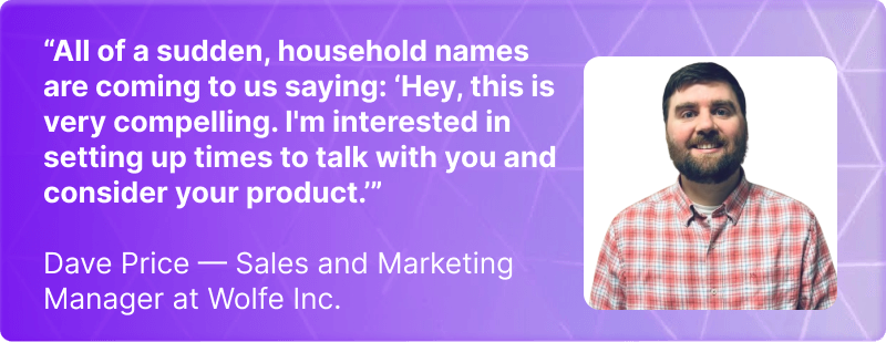 — Dave Price, Sales and Marketing Manager at Wolfe Inc.