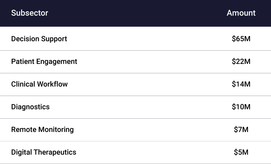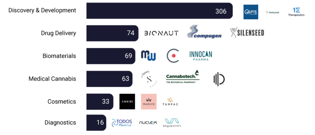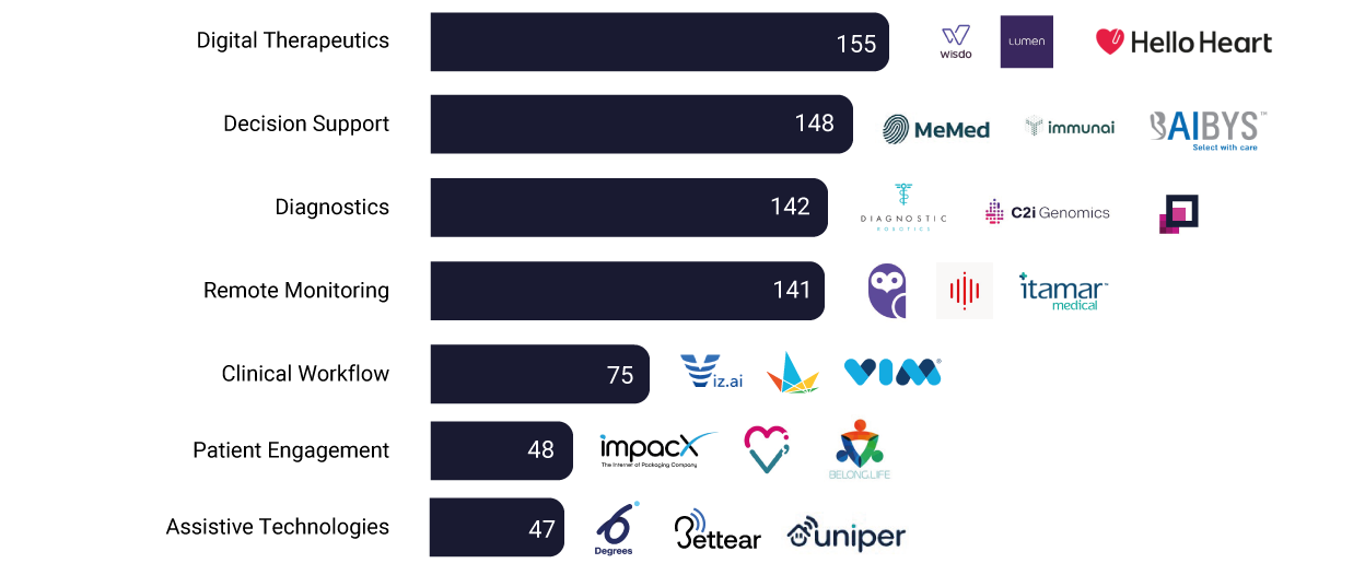 Two clusters of companies stood out in terms of private capital raised, namely digital health companies dealing with decision support, and medical device companies dealing with treatment therapeutics. Additionally, artificial intelligence is a growing and leading core technology in the Health Tech sector, with over 58% of companies and 61% of deals. We anticipate a continued increase in the use of artificial intelligence, big data, and machine learning technologies across all three subsectors - digital health, medical devices, and pharma.