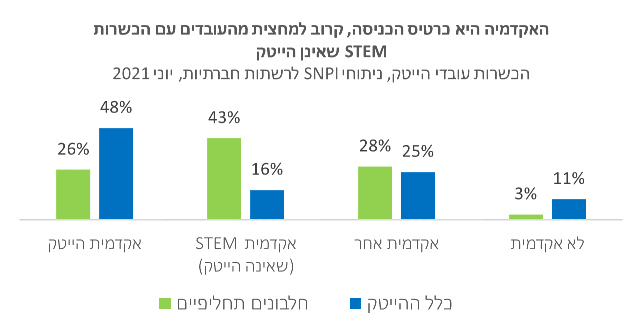 בעוד בתחומי ICT רוב היזמים הם בעלי תואר בהנדסה או במדעי המחשב, הרי בסקטור החלבונים התחליפיים, כשליש מהיזמים בעלי תואר אקדמי בביולוגיה, כימיה, ביוכימיה, ביוטכנולוגיה וכד'. בנוסף, כ-20% מהיזמים הן נשים, בהשוואה ל-12% בתעשיית ההייטק כולה.