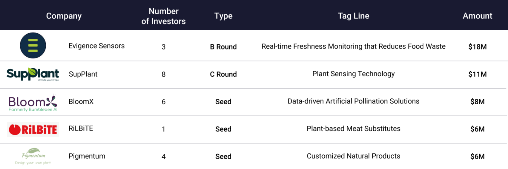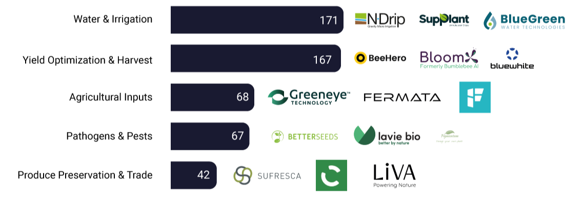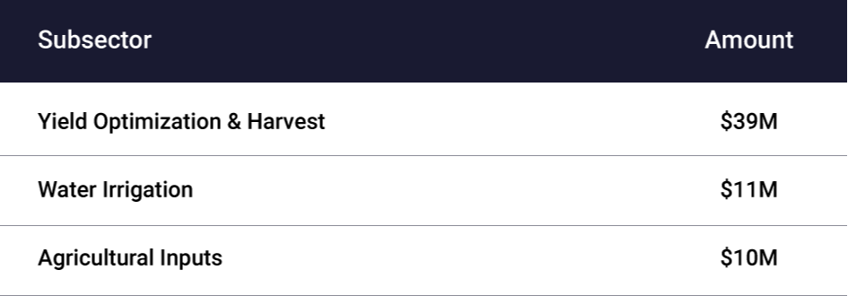 Agriculture - Autonomous and robotic solutions as well as data-based digital tools for both farmers and ecosystem stakeholders have gained the confidence of investors, proving that both the value offering and product market fit of these solutions are recognized.