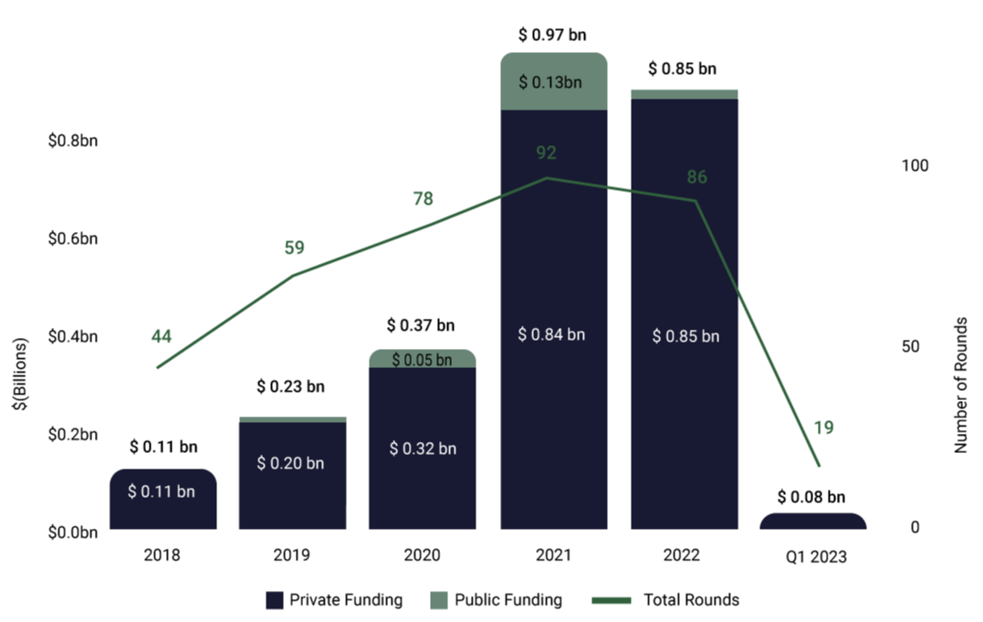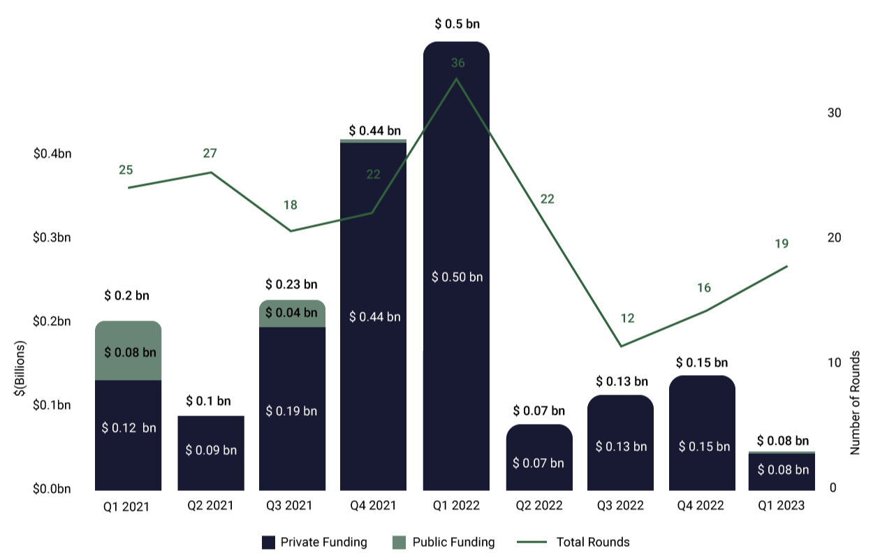 Following an outstanding 2022 followed by a global macroeconomic slowdown, Q1 2023 has clearly been a challenging quarter for the overall Agriculture-Food sector. In terms of overall investments, as well as average deal size, Q1 has reached an all-time low, however, the number of investments has only decreased slightly - investor interest remains high, and company roadmap milestones are being met.