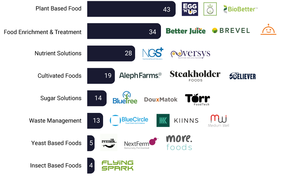 Food - Israeli food startups are continuously sprouting groundbreaking scientific advancements that enable supportive solutions for cultivated foods, novel ingredients, and packaging subsectors.