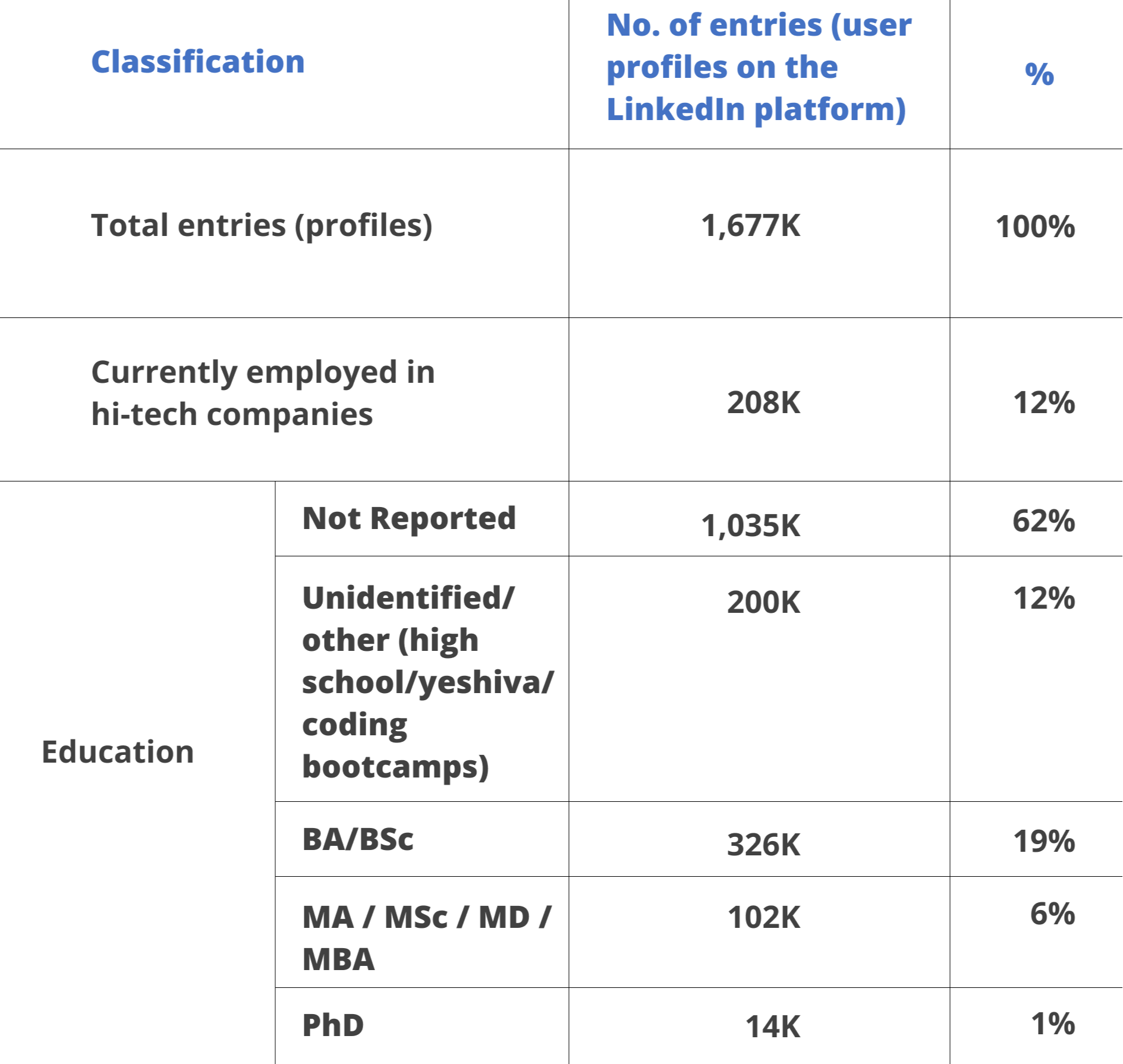 Insights from an analysis of the educational and employment data of all LinkedIn users employed in Israel