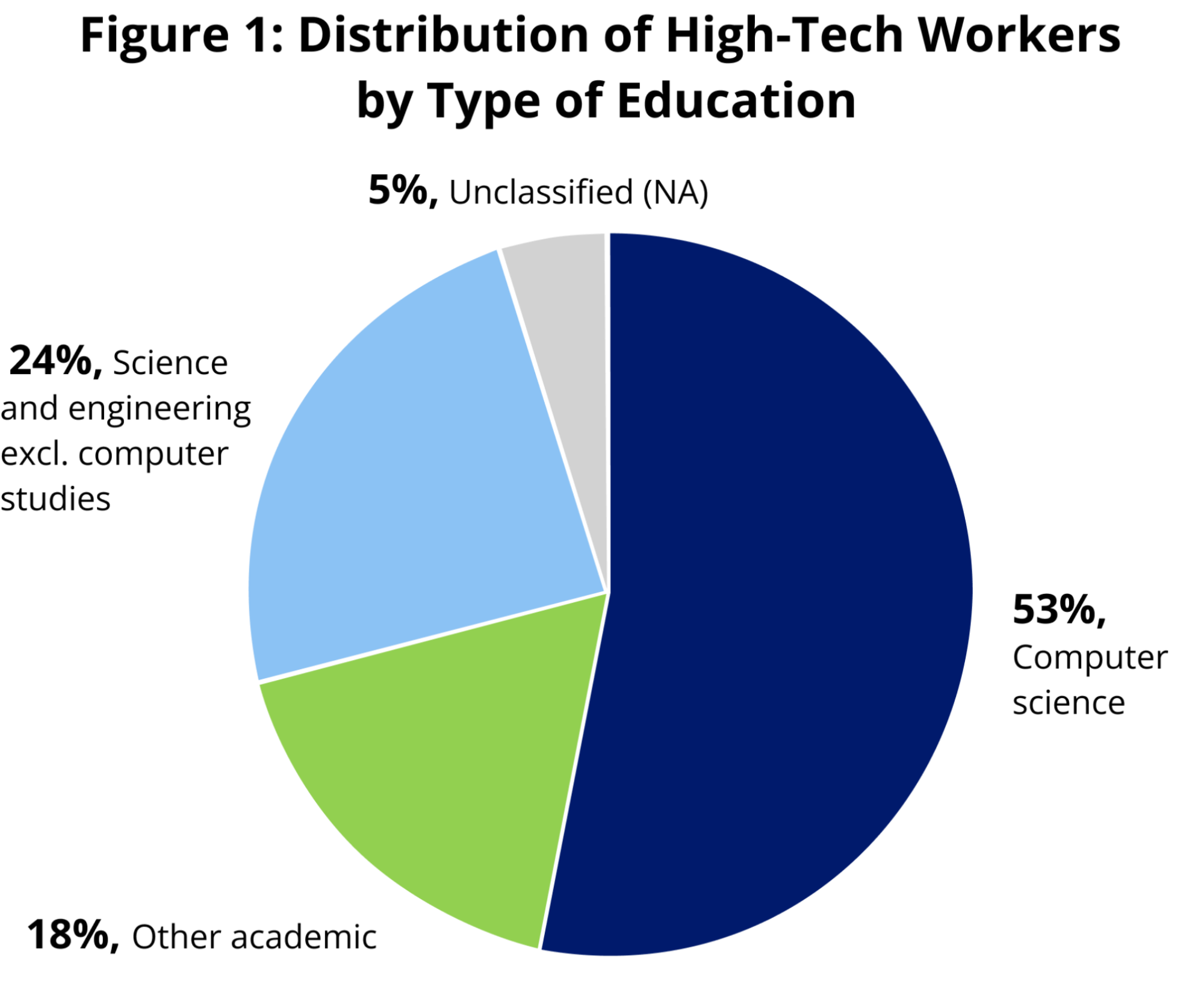 47% of high-tech employees have no background in computer studies. Instead, 18% have other engineering or scientific qualifications, and one-third have no technological training whatsoever.
